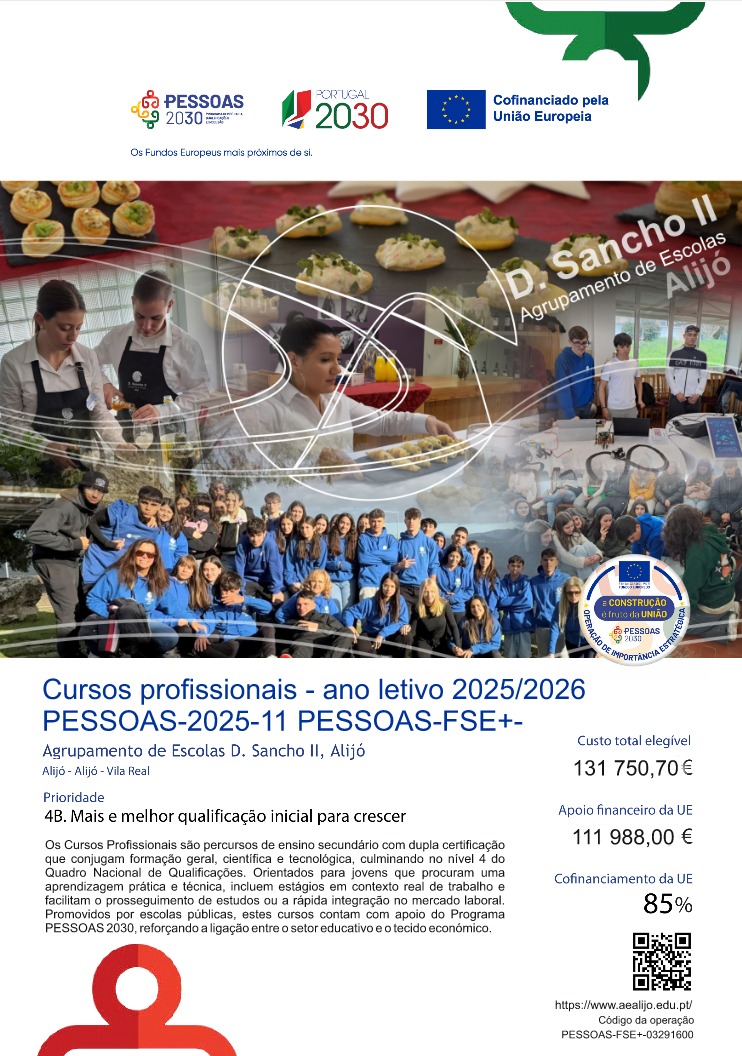 Ficha da operação PT 2030 - Cursos Profissionais - ano letivo 2025/2026